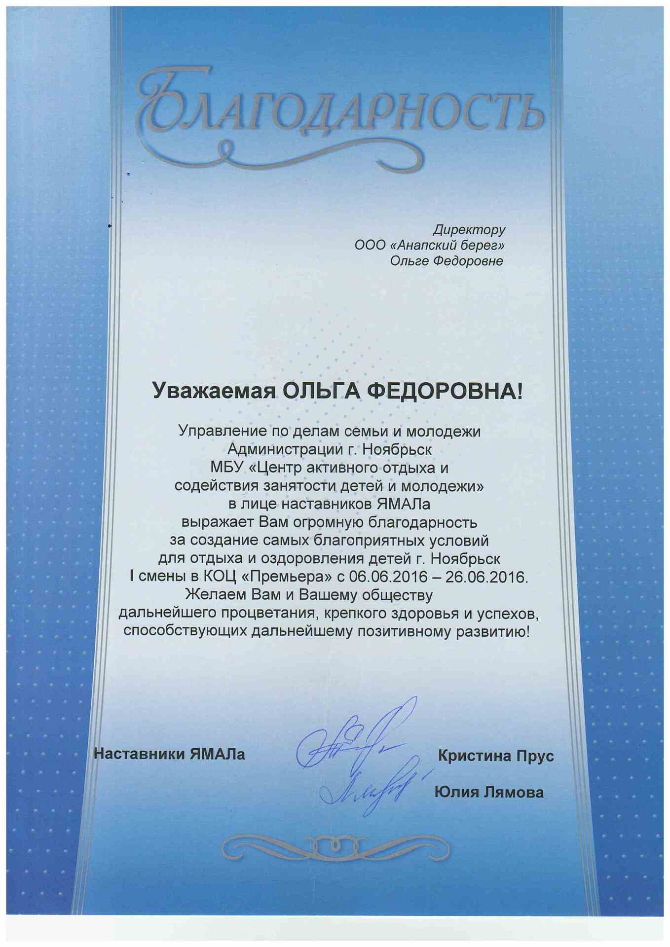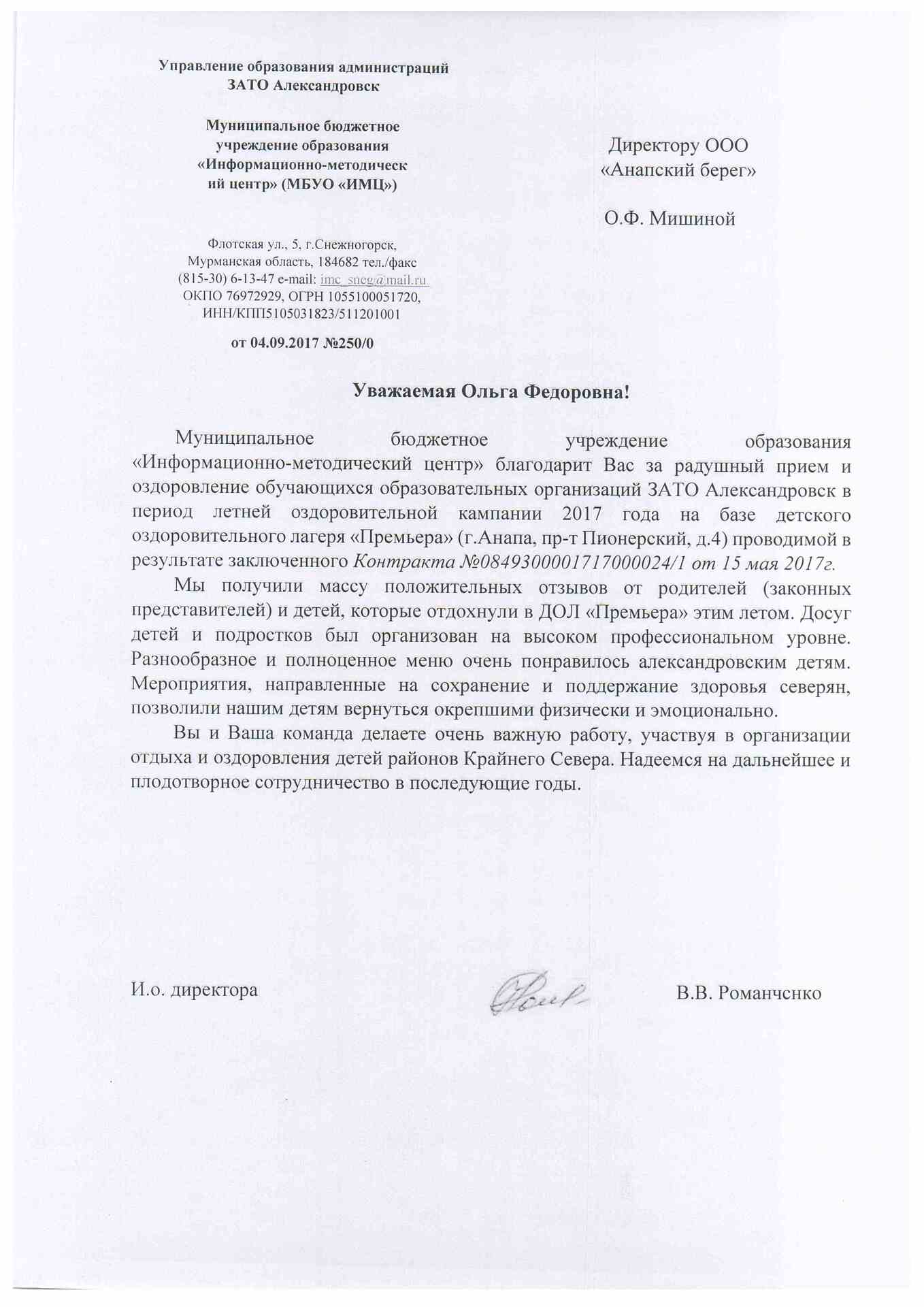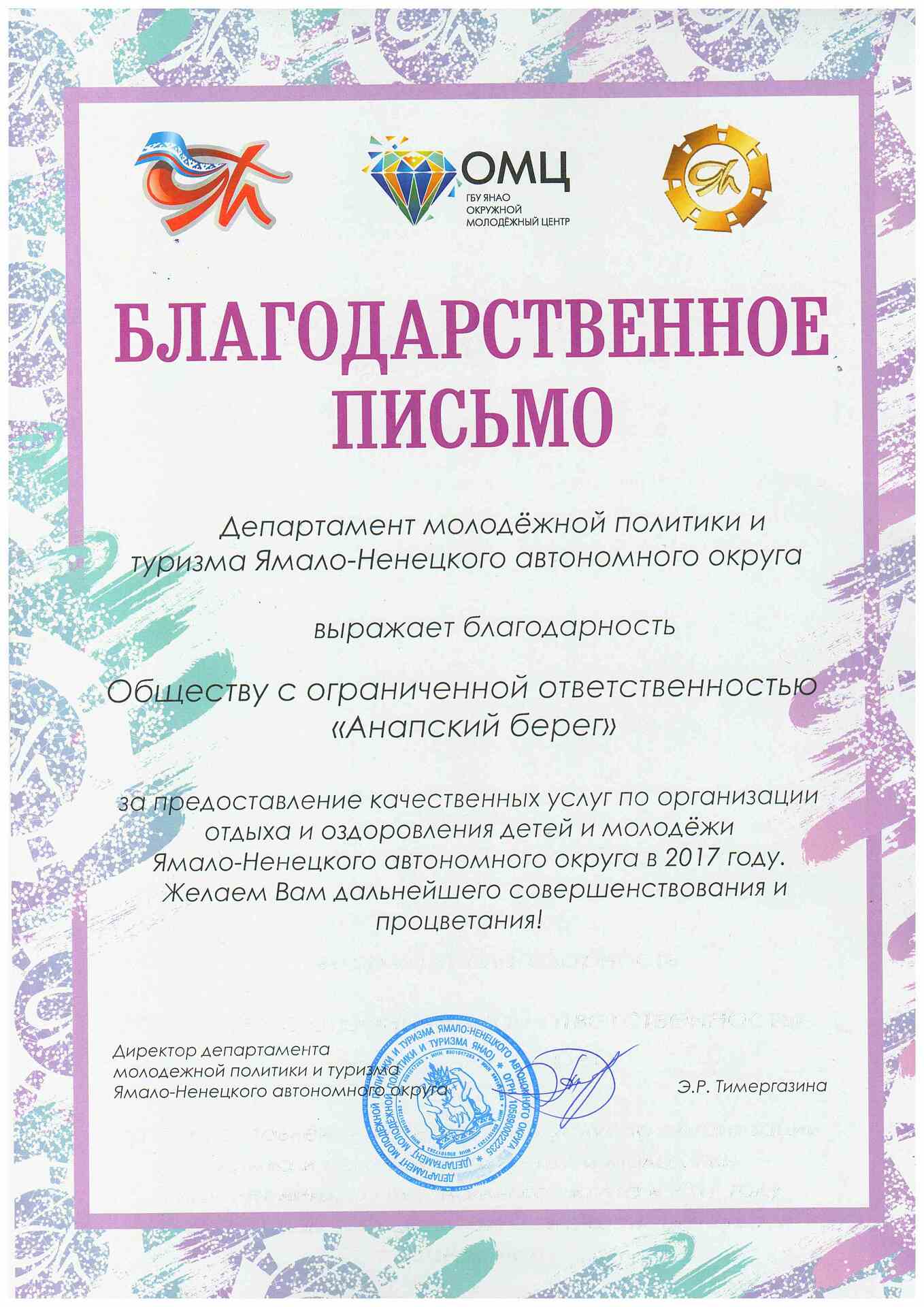 Туроператор "Анапский берег" принимает сертификаты СПб ГБУ ЦОО "Молодежный" на оплату части стоимости путевок в детские оздоровительные лагеря.