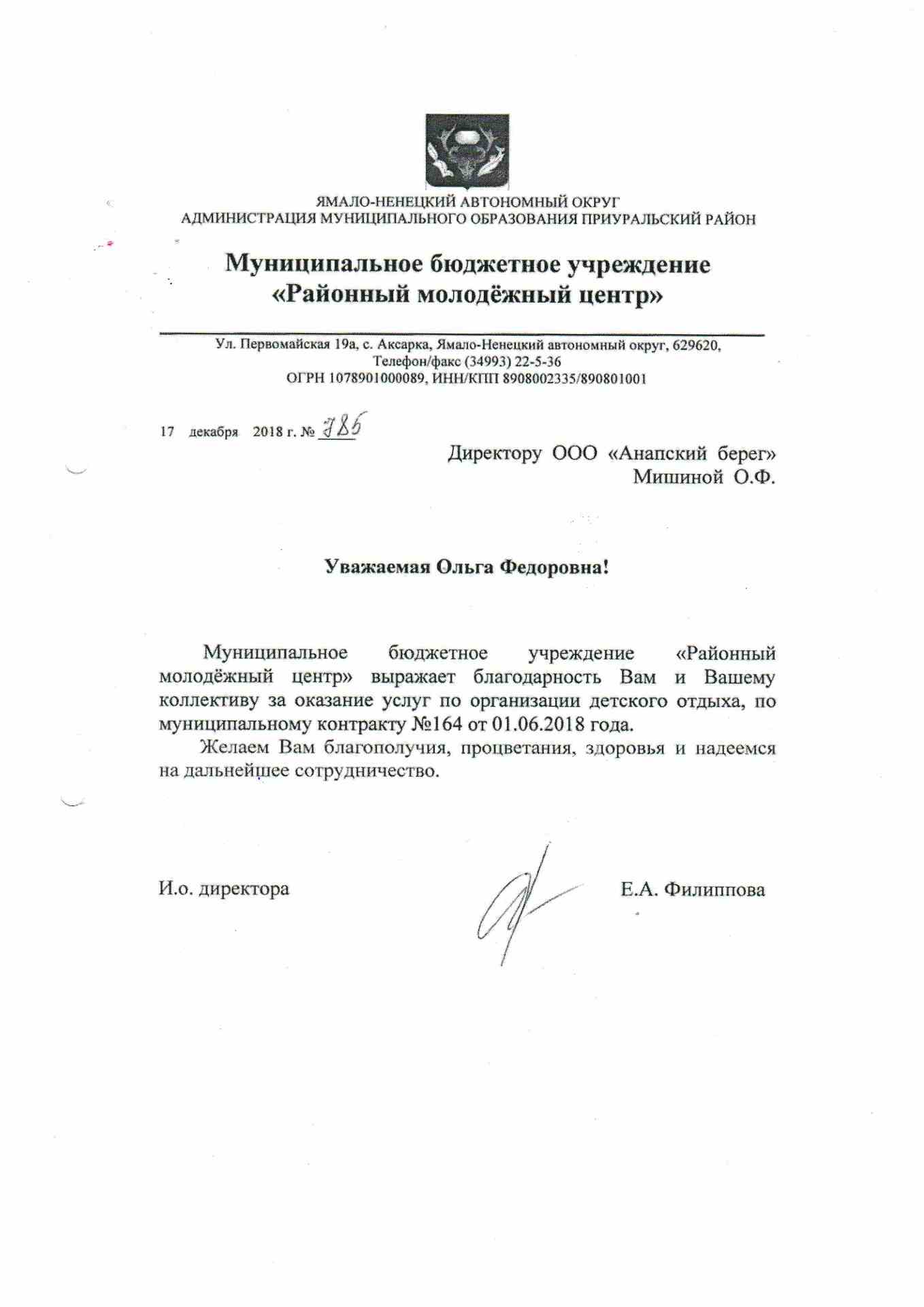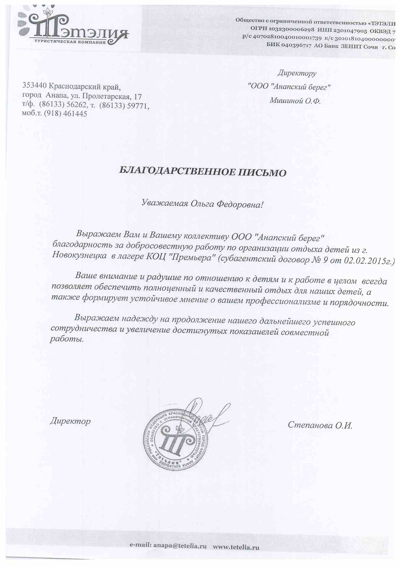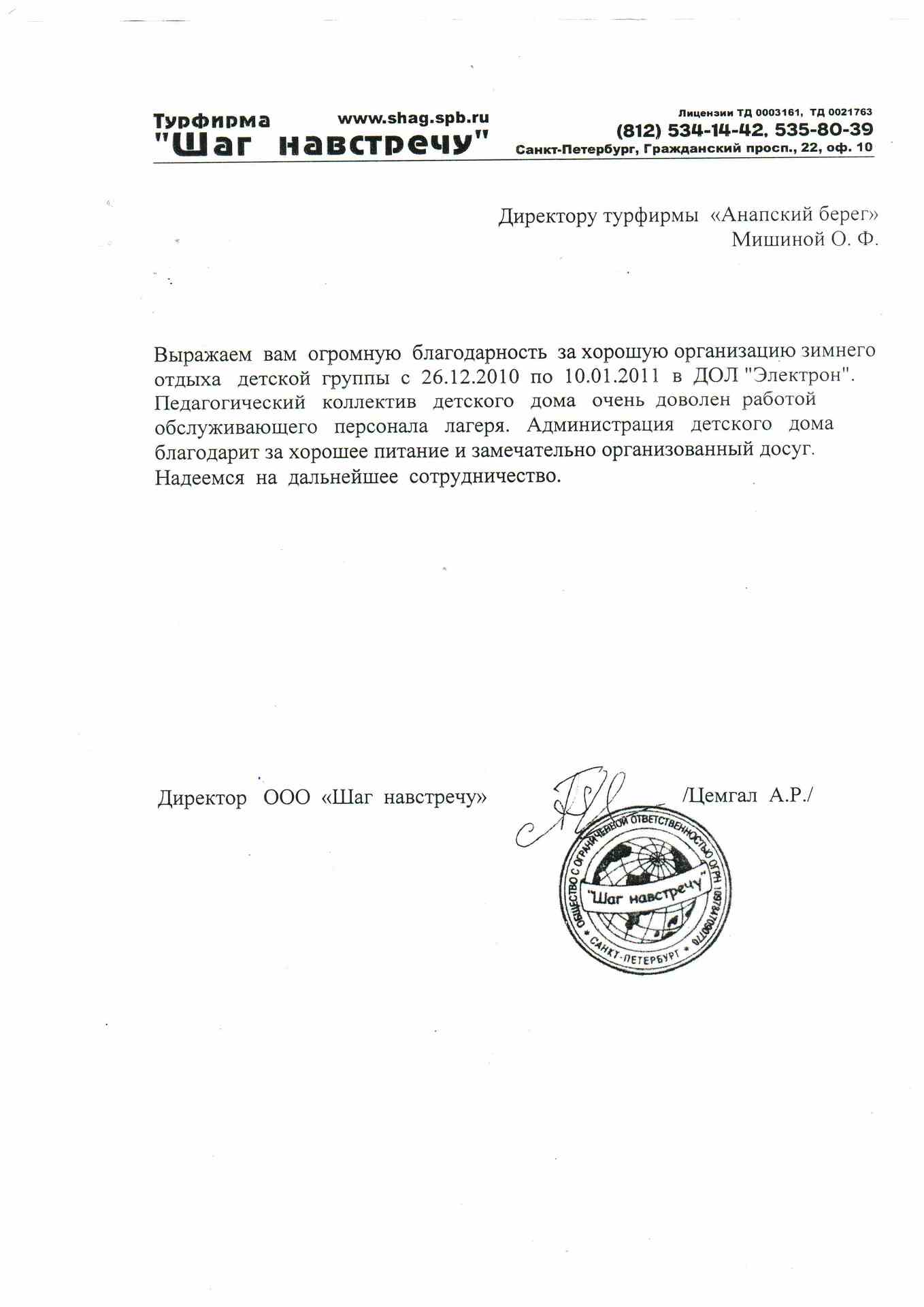 Туроператор "Анапский берег" принимает сертификаты СПб ГБУ ЦОО "Молодежный" на оплату части стоимости путевок в детские оздоровительные лагеря.